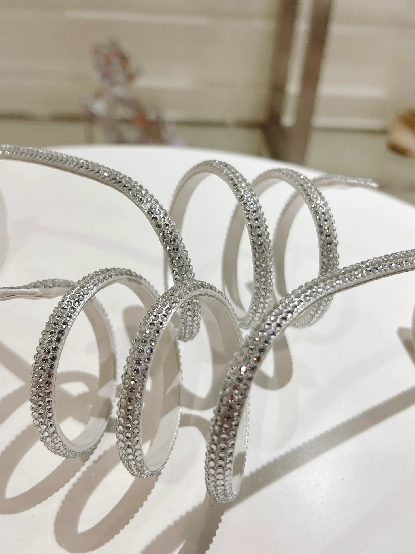 - Crystal-embellished spiral ankle strap