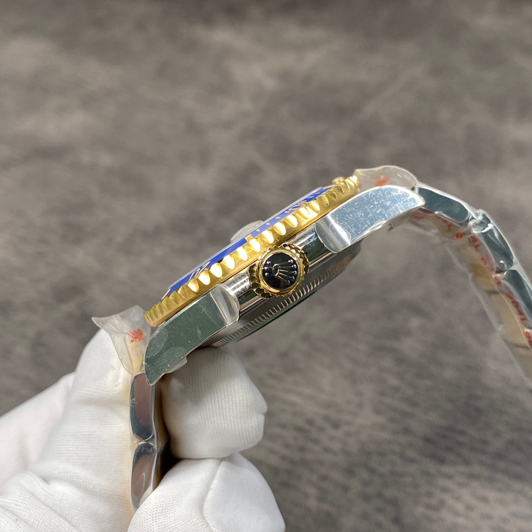 40 mm automatic diver-style watch featuring a deep blue dial and gold-tone case with galvanic finish. Crafted for precision, durability, and a striking appearance that blends elegance with performance. Designed with luminous details and a robust structure for everyday luxury.