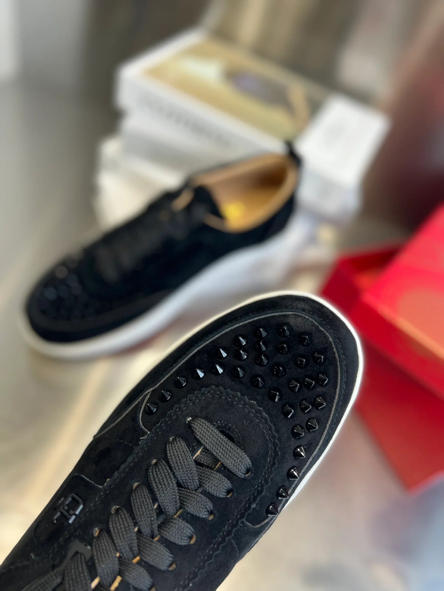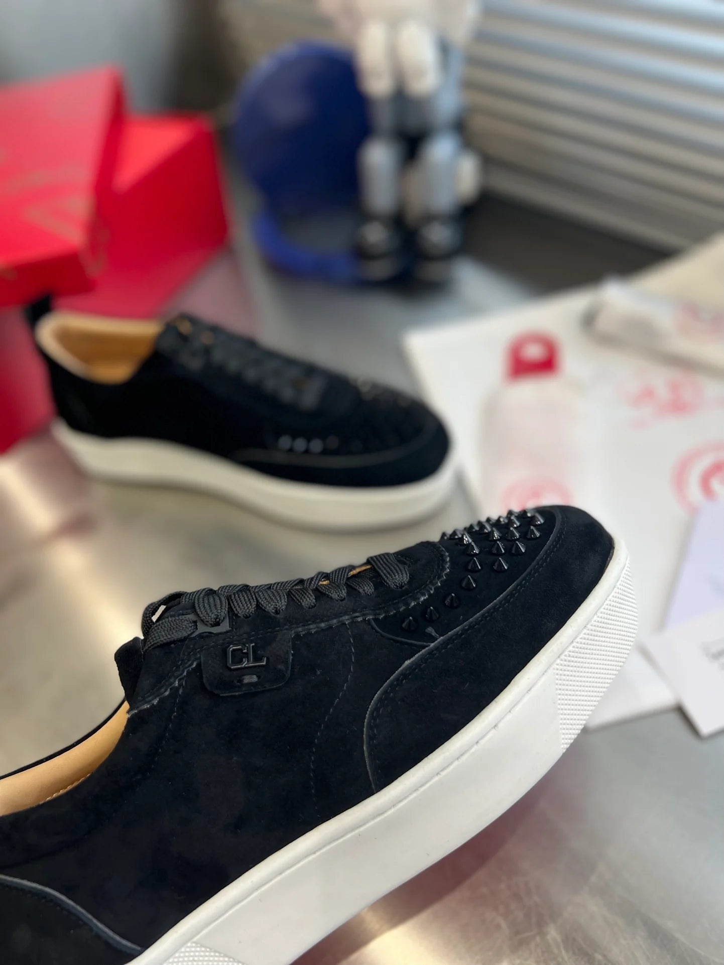 Style: Low-cut silhouette with an edgy studded finish