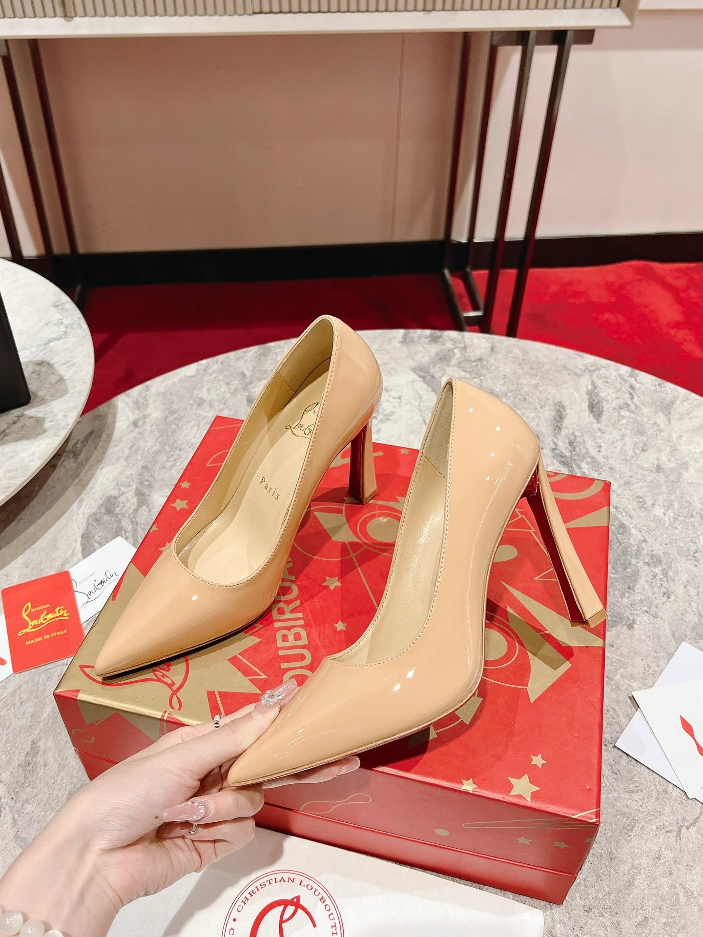 These pointed-toe pumps feature a sleek silhouette with a refined low-cut upper and elongated toe for a timeless, feminine look. The slanted 10 cm high heel adds an elegant lift while maintaining balance and comfort.