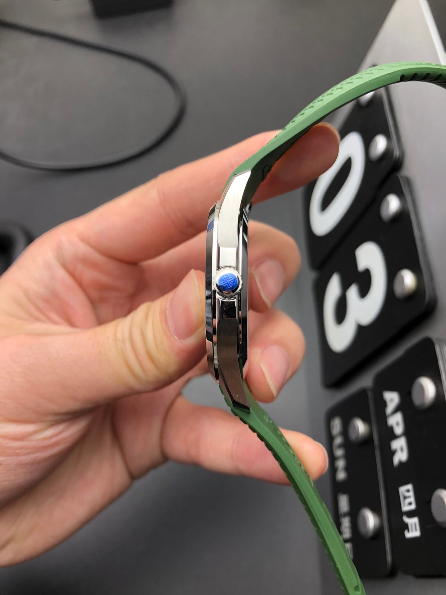 Sport-luxury 40 mm automatic watch featuring a textured green dial and matching rubber strap. Crafted with a polished stainless-steel case and precise date display for everyday functionality. Designed for comfort, durability, and modern sophistication.